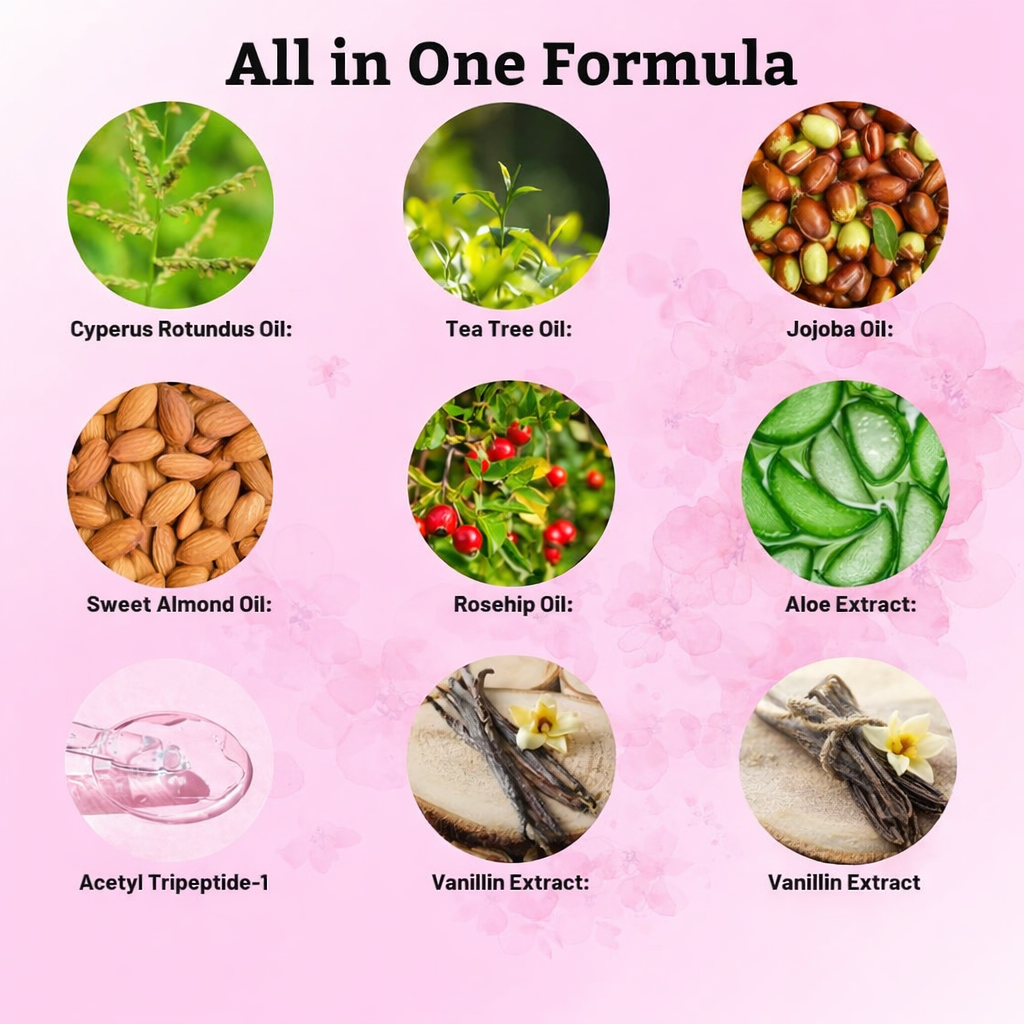 Our oil is formulated with natural ingredients that are safe and effective for various skin types. It’s dermatologist-backed to ensure a pain-free experience and to soothe your skin while offering long-lasting results that rejuvenate your skin's appearance.